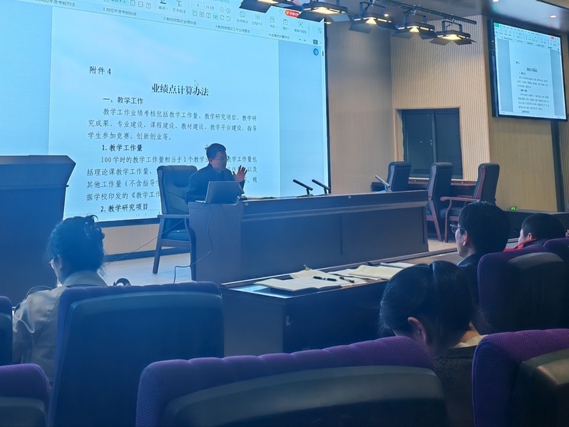 锚定以评促建,规范教学及管理,提高教学质量的培训目标,院长胡鹏围绕迎评促建中心任务,重点对《赣东学院岗位年度考核办法》《岗位年度考核标准》《教师岗额定业绩标准》《业绩点计算办法》《赣东学院教学工作量计算办法》《赣东学院实践教学管理办法》《应用工程学院绩效分配方案》等文件进行了专项解读,强调考核工作与评估指标深度挂钩,旨在通过制度引导,推动教师在课堂教学、实验实习、材料规范、育人成效等关键环节对标对表、精准发力。