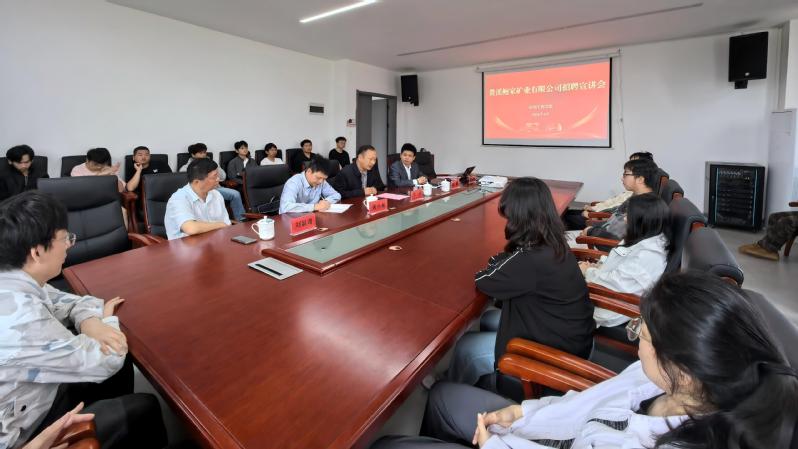 学院领导对企业来校宣讲表示欢迎并介绍了学院基本情况,鲍家矿业代表介绍了公司的发展历程、业务布局、人才培养体系及招聘需求。