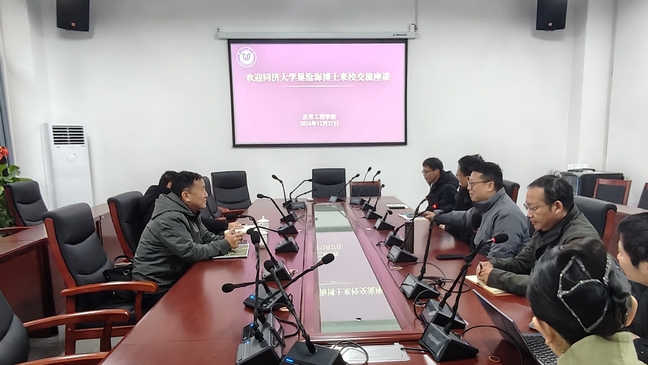 12月27日上午,同济大学巢沧海博士受邀来学院就学科建设、产教融合、校企合作等方面开展洽谈。应用工程学院行政负责人胡鹏主持会议,校后勤与保卫管理处负责人万志明、应工学院党总支负责人郭瑞以及各专业负责人、相关教师代表参会。