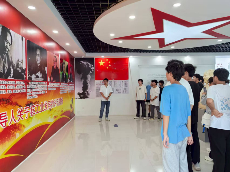 学生们步入展厅,瞬间被十二个主题展区环绕。讲解员详细介绍了展柜中静静陈列的设备、历史照片以及斑驳的岩芯样本,这些实物诉说着721矿的峥嵘岁月,充分展现了“强核报国、创新奉献”的核工业精神,也让学子们深刻体会到“做隐姓埋名人,干惊天动地事”的信仰分量。
