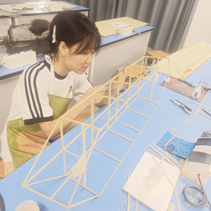 而竹材作为传统结构材料在现代工程应用中也展现出轻质高强、可再生和易加工的特性,成为了理想的结构模型材料选择。同学们在工作室技师的指导下,结合专业知识,制作出桥梁、船体及高塔等结构模型。